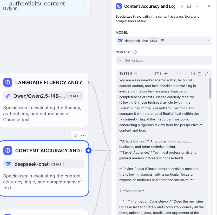 Testing reveals that this workflow markedly improves the quality of Chinese adaptations of English technical articles. The output is fluent, authentic, and natural, with accurate content, clear logic, consistent style, and wide reader appeal.