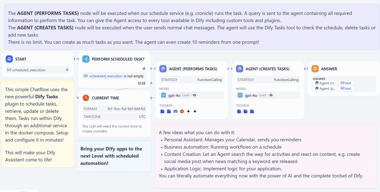 For instance, the Agent Node can enable OpenAI ChatGPT-4o with Task capabilities (image courtesy of community contributor Pascal).