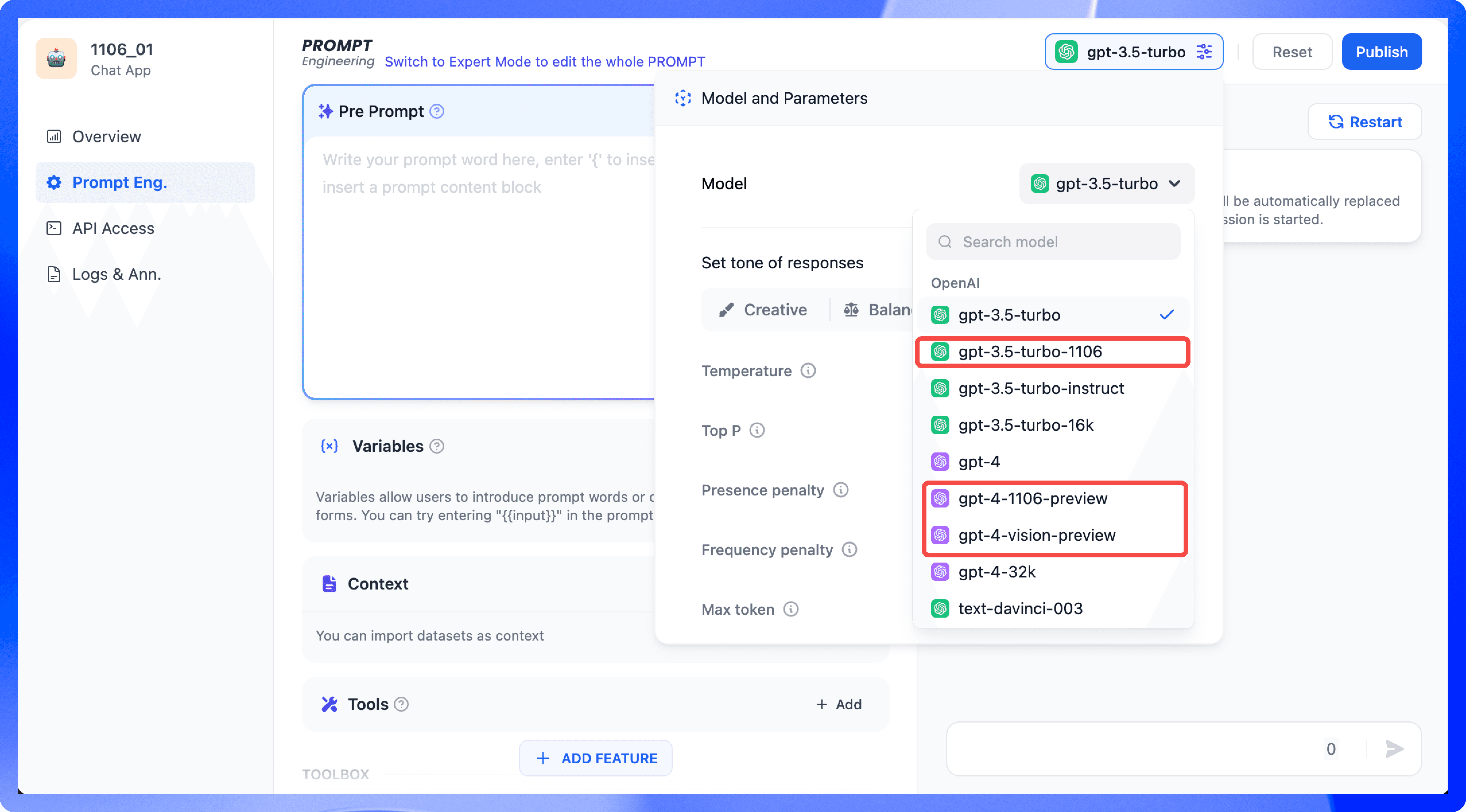 Dify.AI has swiftly integrated OpenAI's newly released GPT-4 Turbo, the most powerful LLM available now with 128K context. Even more exciting is our upcoming expansion into multimodal abilities, enabling features like GPT-4 Vision for multi-image cognition.