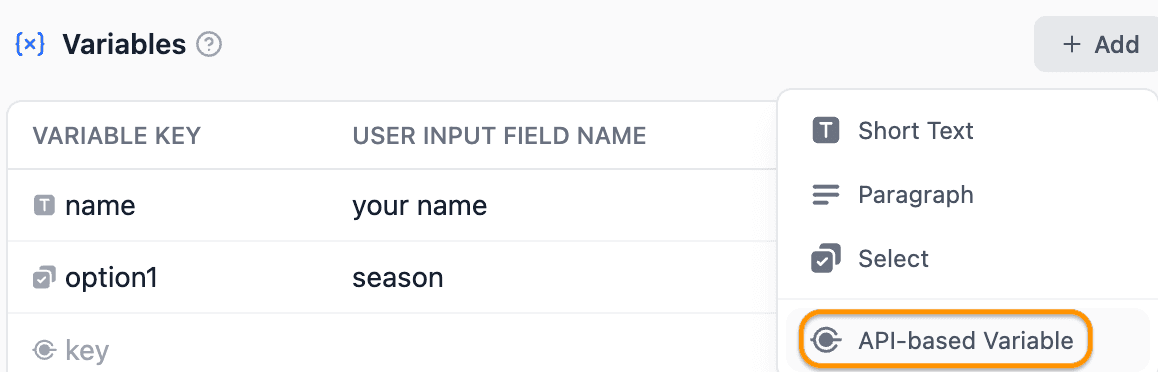 The 'API Extension' feature, which was part of our 'Chat App' before, has found a new home in the 'Variables' section now. It'll show up as a variable in your prompts. And if you've set up 'API Extension' before, they'll keep working as usual.