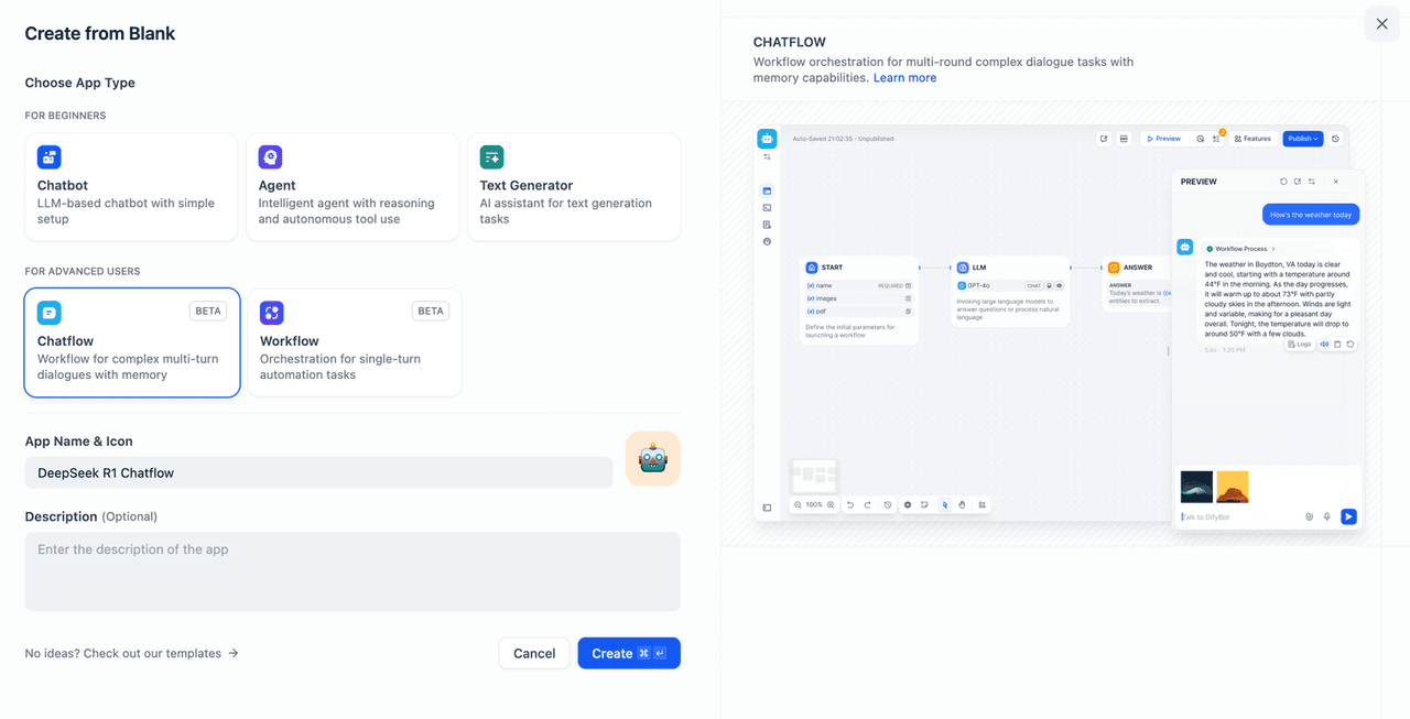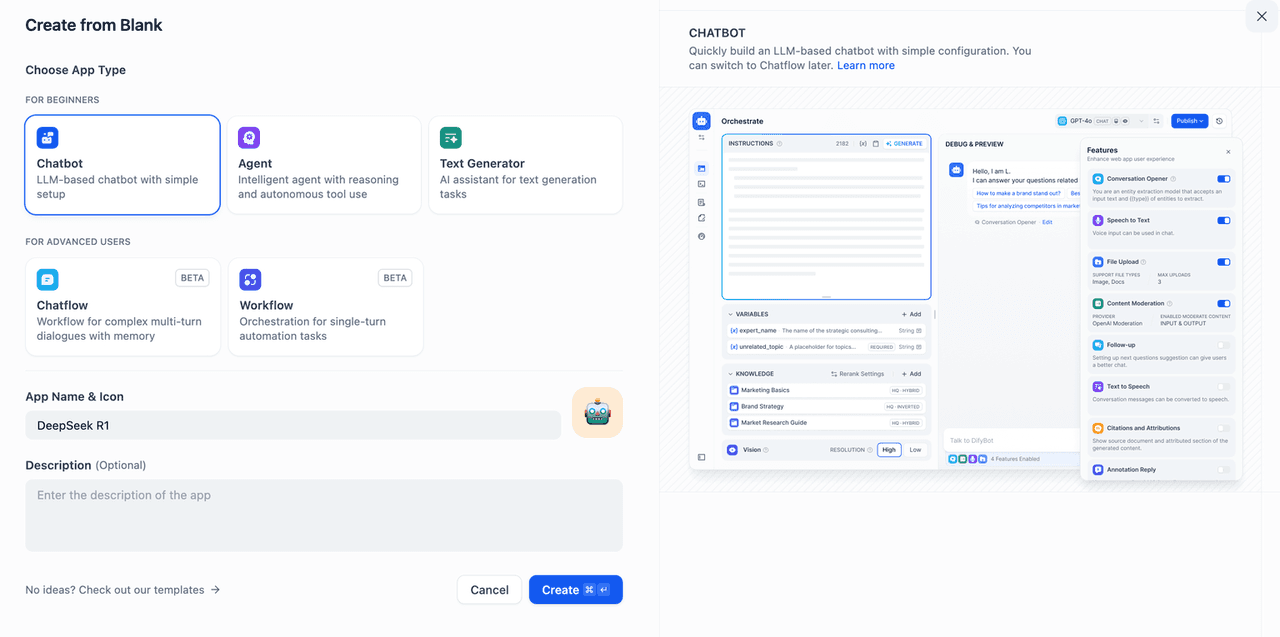 Just as a well-equipped kitchen is essential for a chef, Dify provides all the tools needed to build AI applications. This popular open-source project on GitHub comes with an all-in-one toolchain. Combined with DeepSeek’s capabilities, you can quickly build a user-friendly AI app without deep coding expertise.