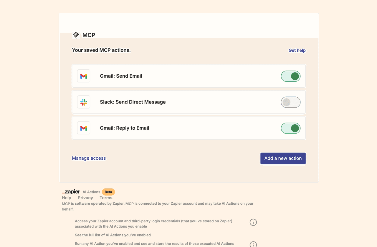 Visit Zapier MCP Settings.
