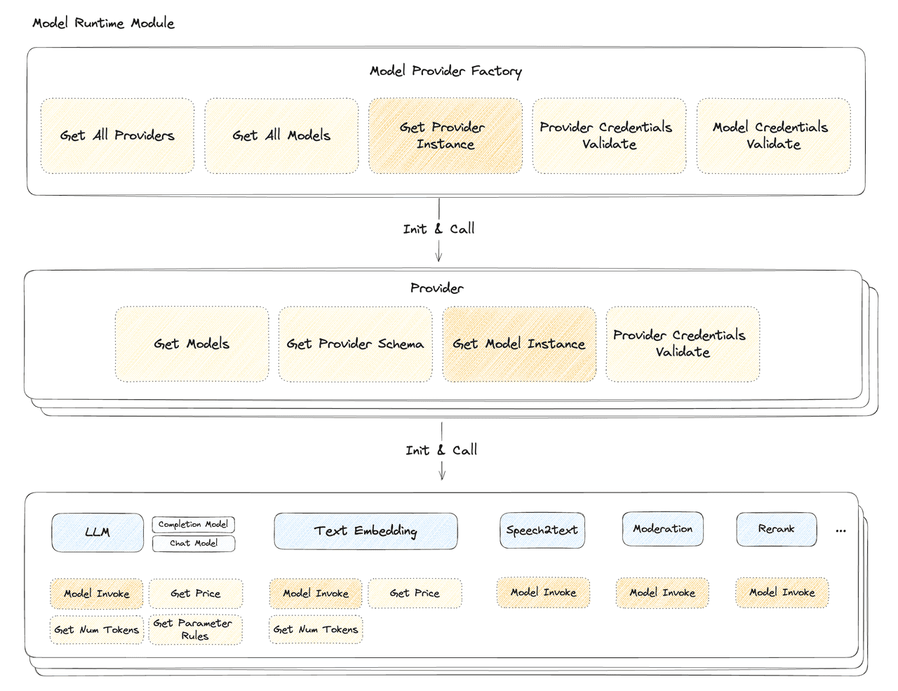 Before version 0.4.0 came out, Dify already backed hundreds of popular commercial and open-source models, both local and MaaS-based. This included LLM, Text Embedding, Rerank, Speech2Text, TTS, and others. But, Dify's dependence on the complex, less adaptable LangChain framework made it tough for developers to add new models. Issues they faced included invasive development, no standard interface specs, and juggling different programming languages for the front-end and back-end.