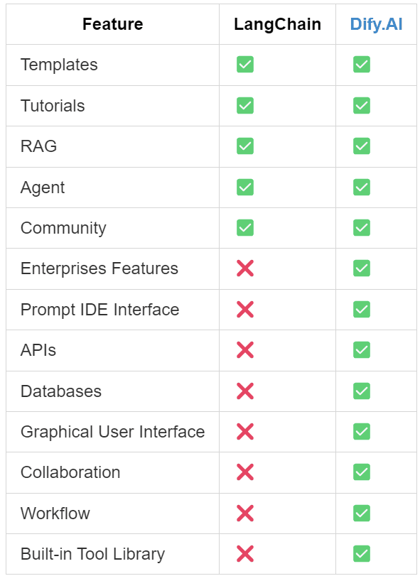 Unlike LangChain, where much of the code is contributed by third parties who may not be accountable for its quality or maintenance, Dify's features deliver what's promised. We hold ourselves to high standards of quality and reliability, and we apply those same standards to contributor PRs.