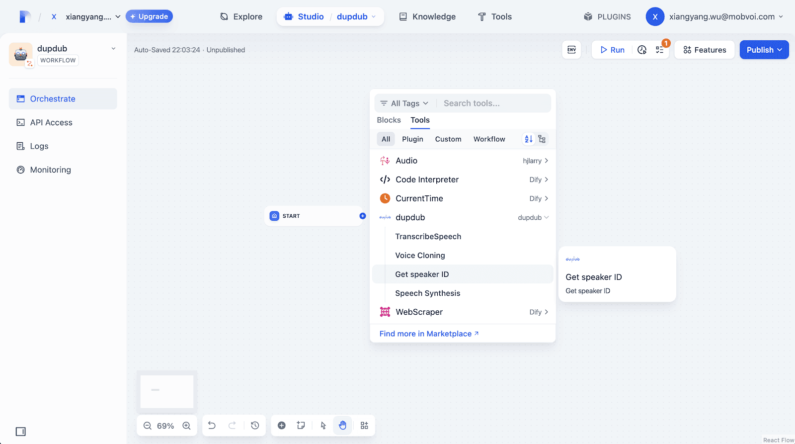 Below is a quick walkthrough of how to use DupDub’s tools in Dify.
