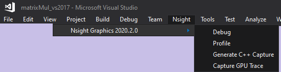 4.2. Continued Integration with Visual Studio under the Nsight Menu
