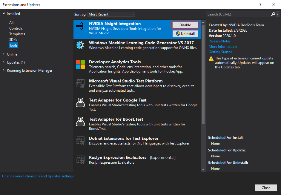3.1. Disable the Nsight Integration Extension