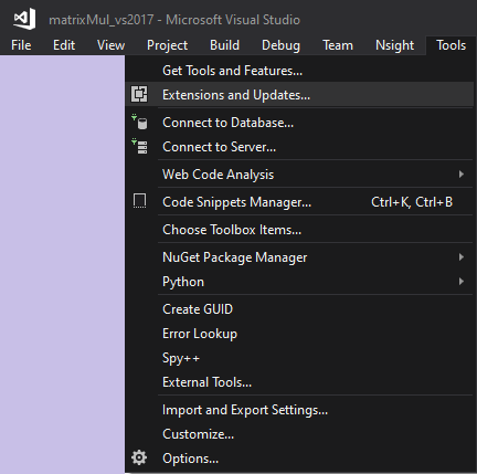 Additionally, note that each version of Microsoft Visual Studio manages its own extensions. Setting the NVIDIA Nsight Integration visibility for a tool in one version of Visual Studio does not affect the NVIDIA Nsight Integration visibility for the tool on other versions of Visual Studio on the same machine.