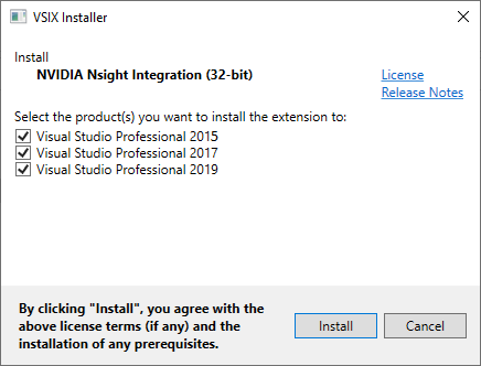 Choose NVIDIA Nsight Integration (32-bit) for Visual Studio 2019 and earlier