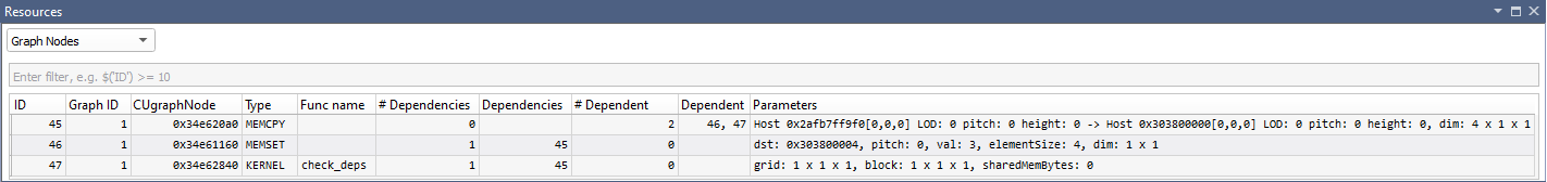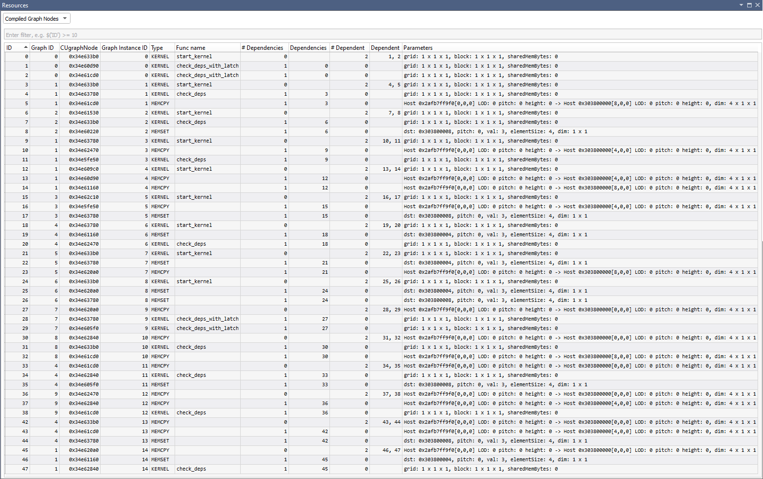 The Graph Instances setting shows information on each CUDA Graph instance.