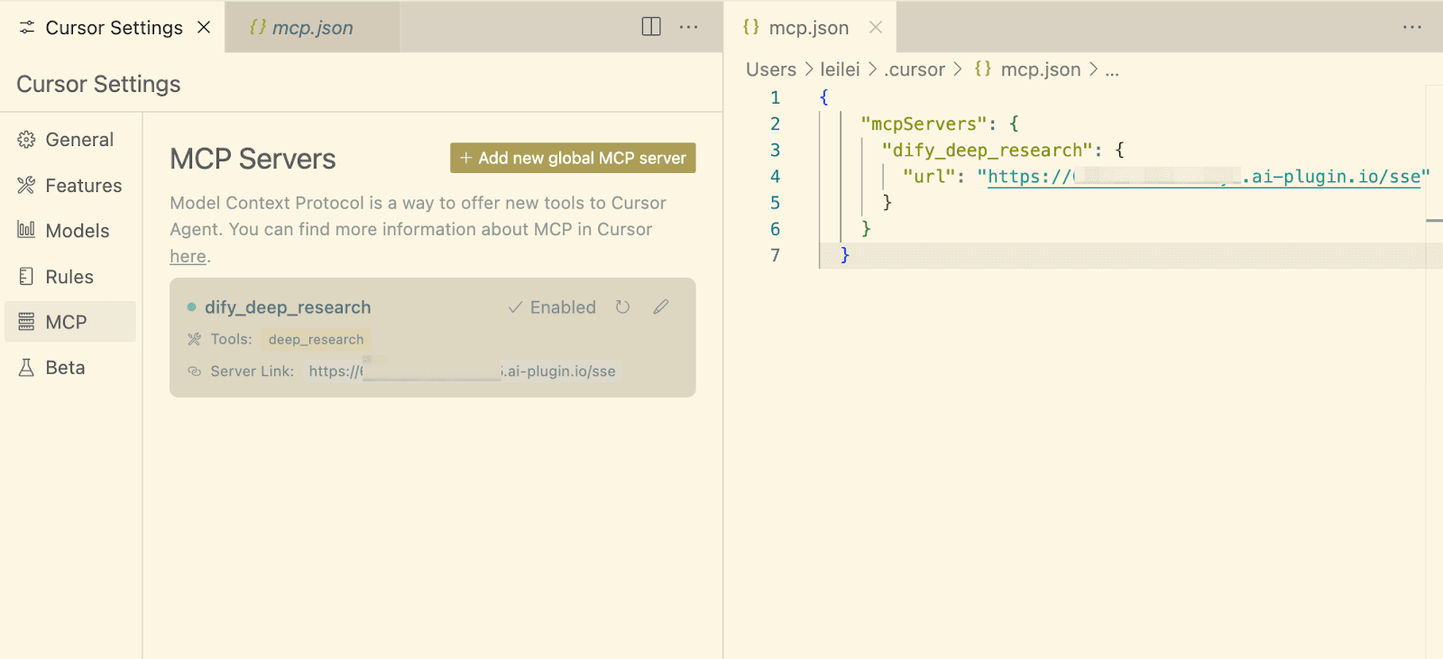 Add Dify MCP Server to Cursor
