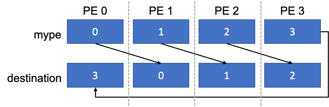 int peer = (mype + 1) % npes;